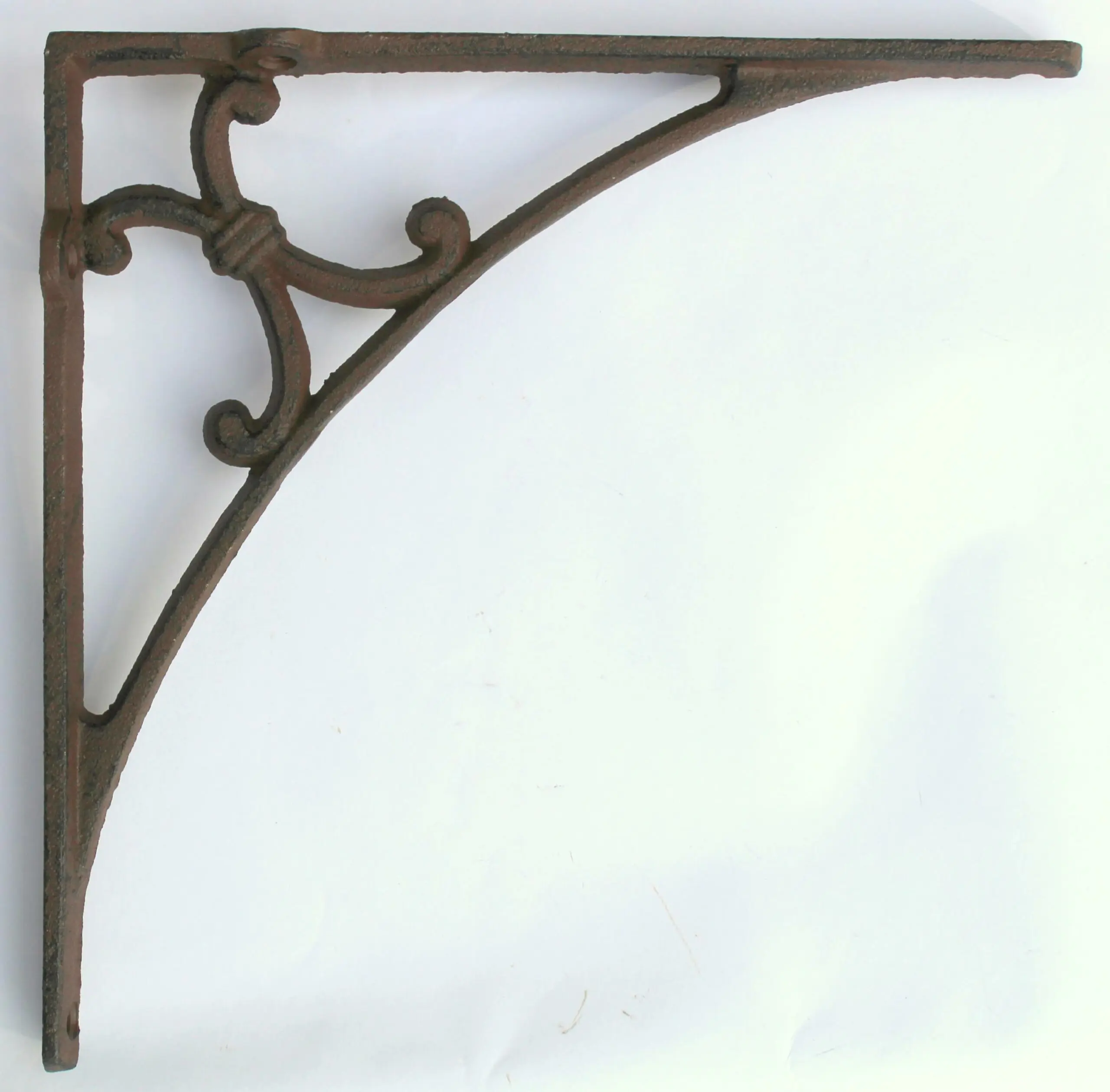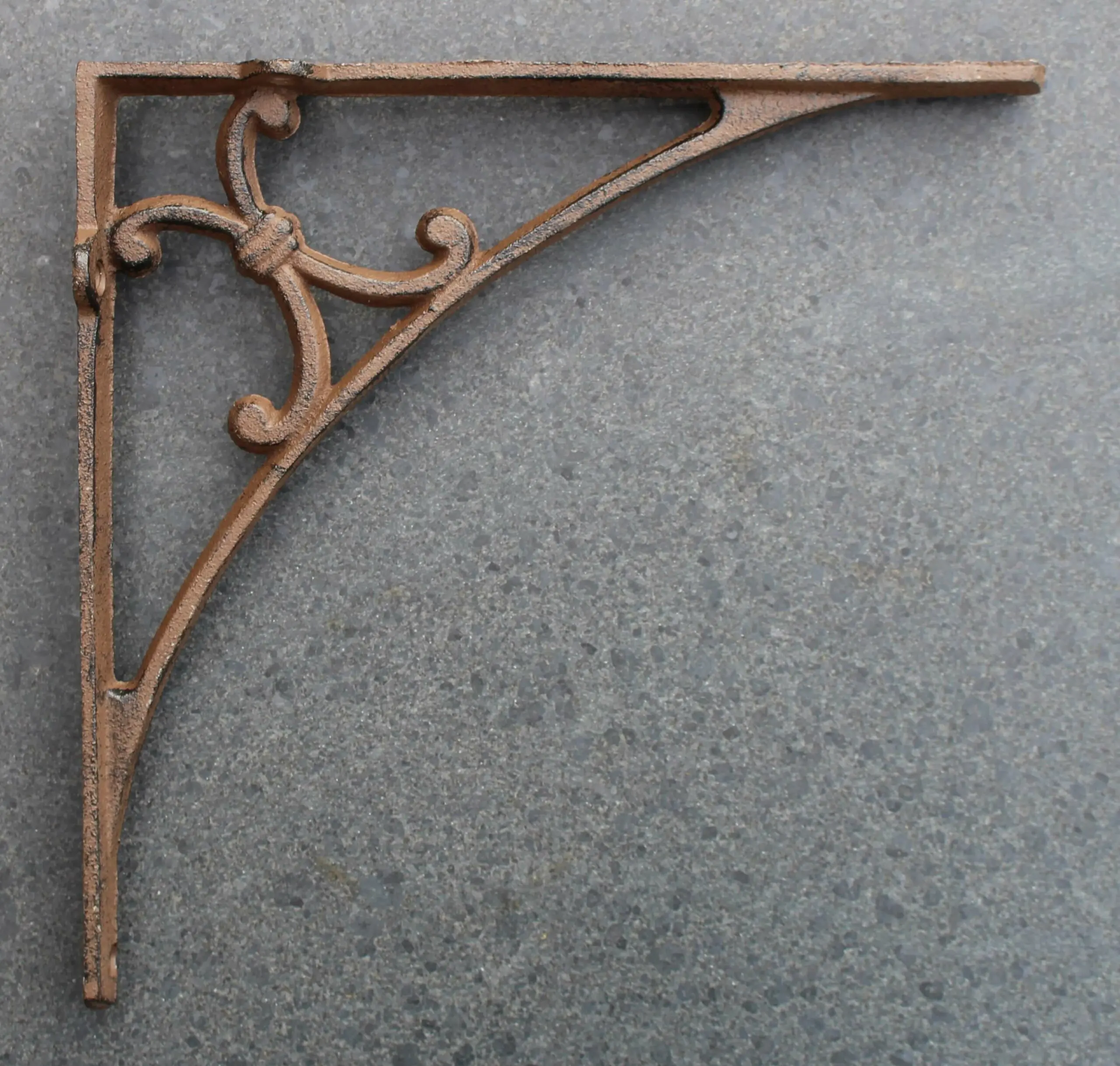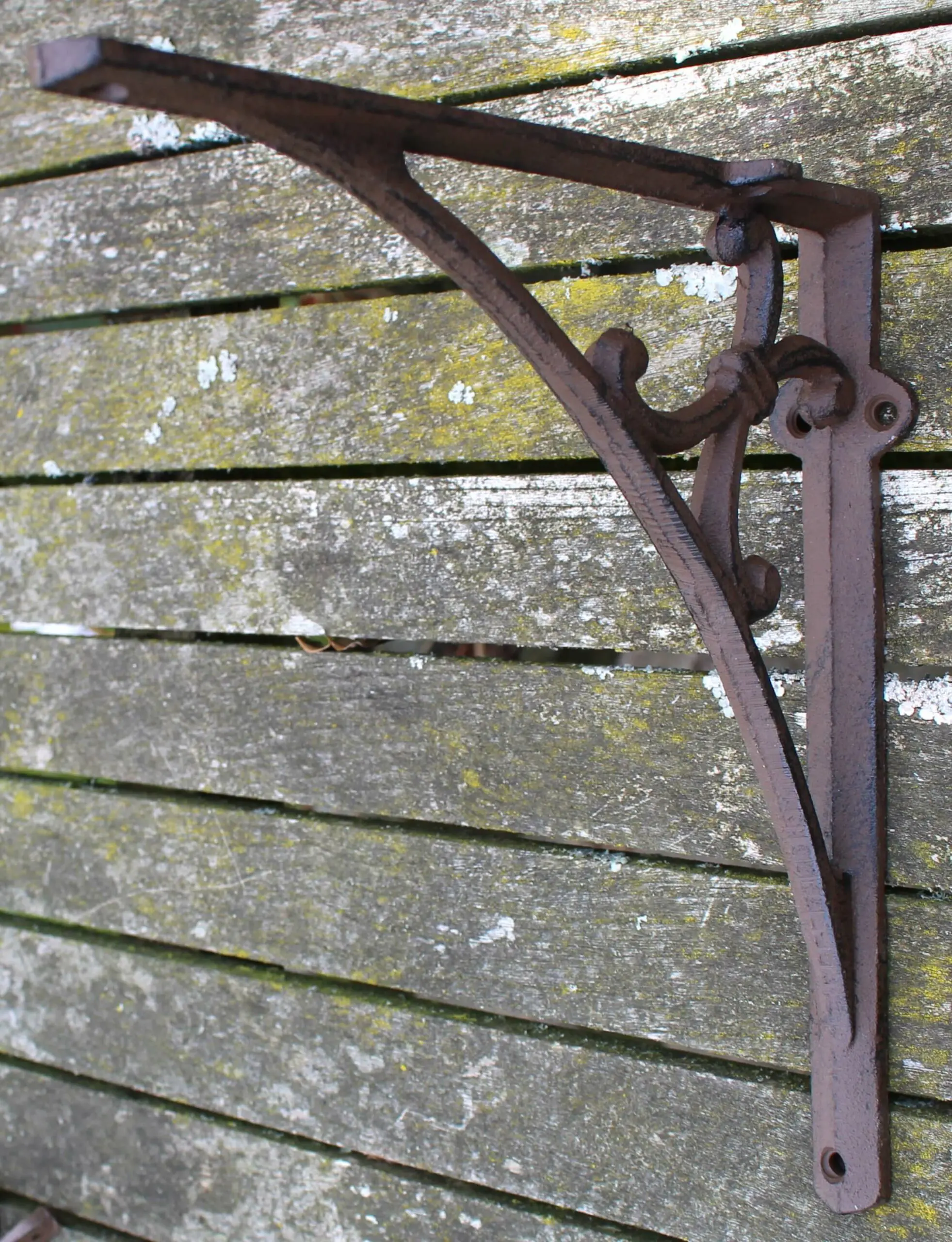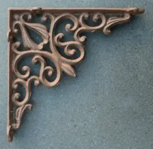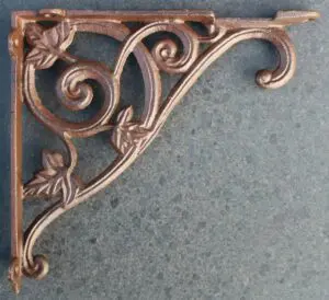Een gietijzeren plankdrager.