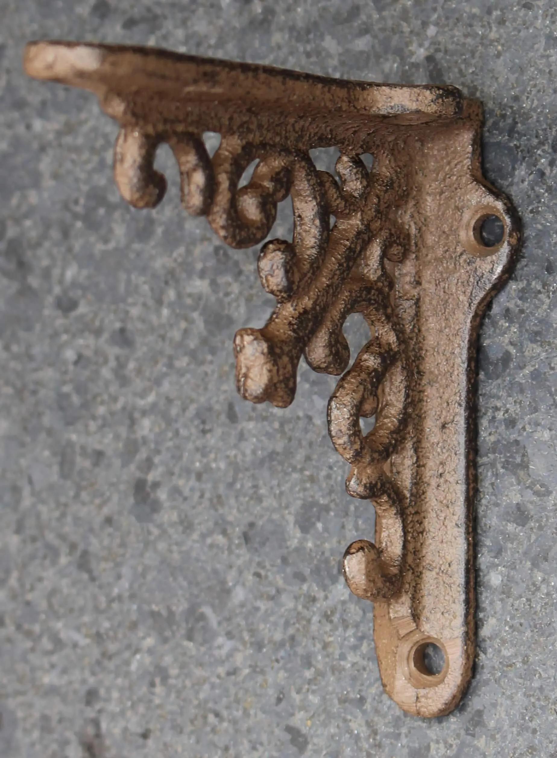 klein gietijzeren plankdragertje van 7,6cm bruin